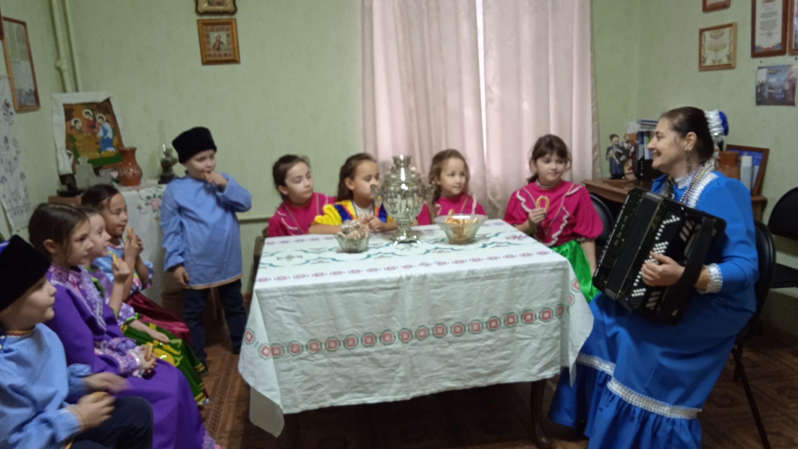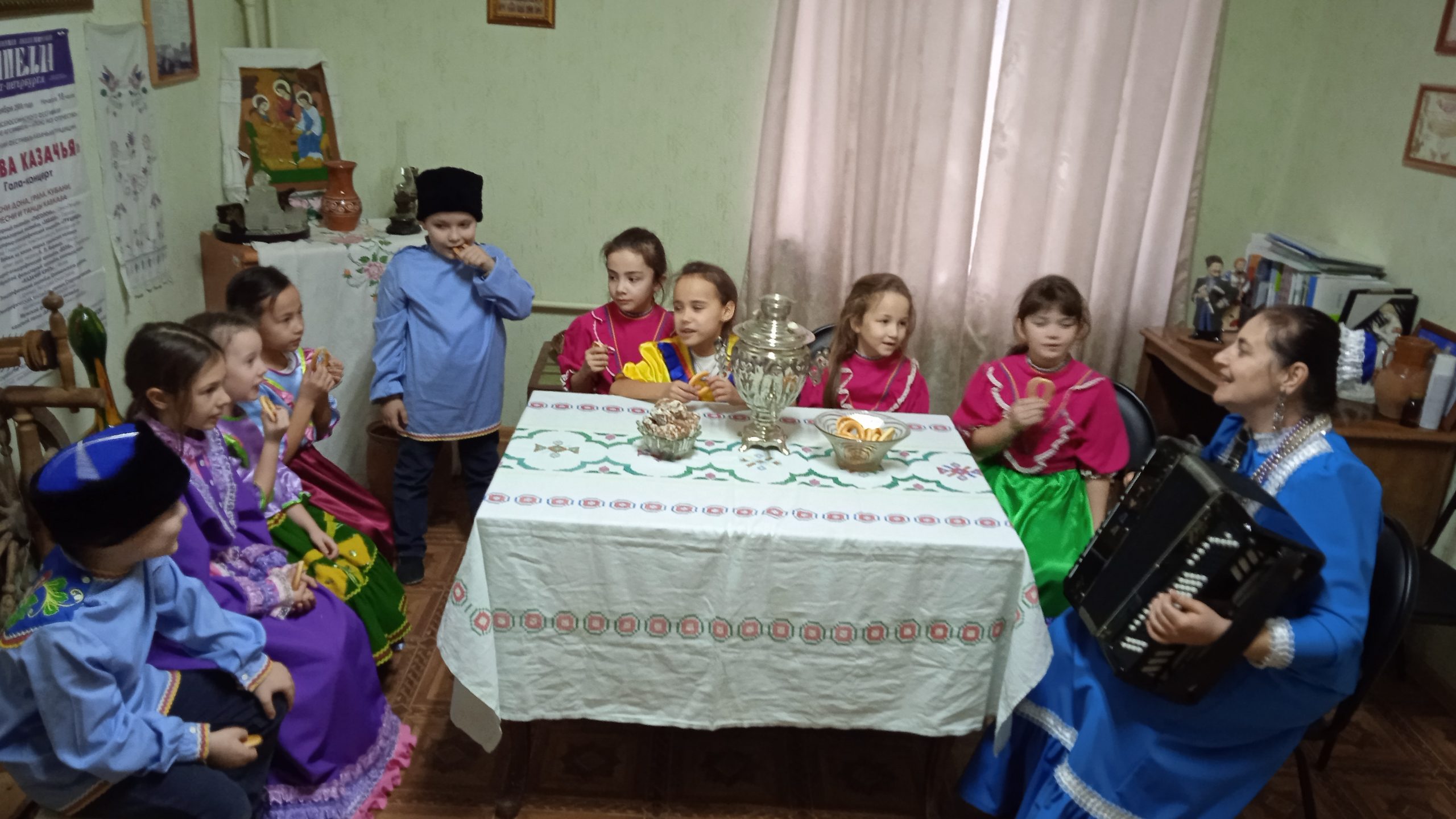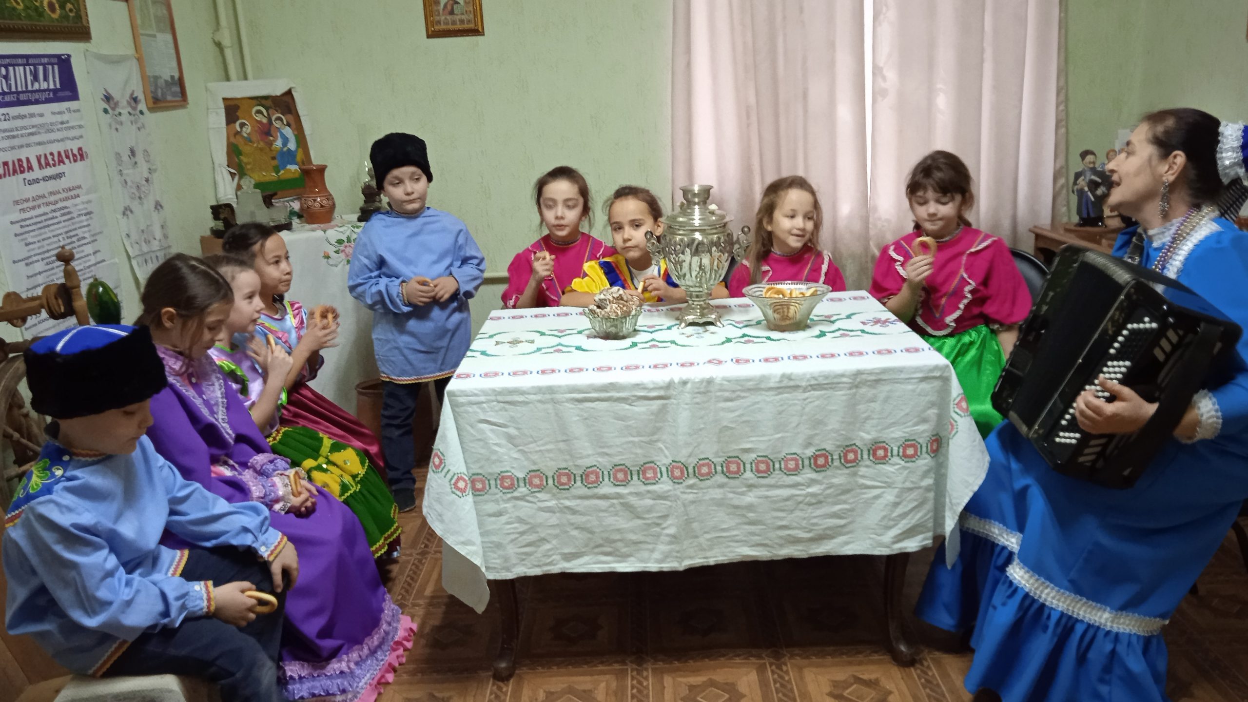 19 января в рамках межведовственного культурно — образовательного проекта Культура для школьников, руководитель детского фольклорного коллектива «Живица» Доценко Е. В. провела мероприятие, в формате Культпоход «Казачьи посиделки, рождественские встречи» для учащихся школы №9. Ребята узнали о том, как отмечали рождественские и крещенские праздники в старину, вспомнили колядки и новогодние песни.