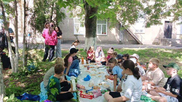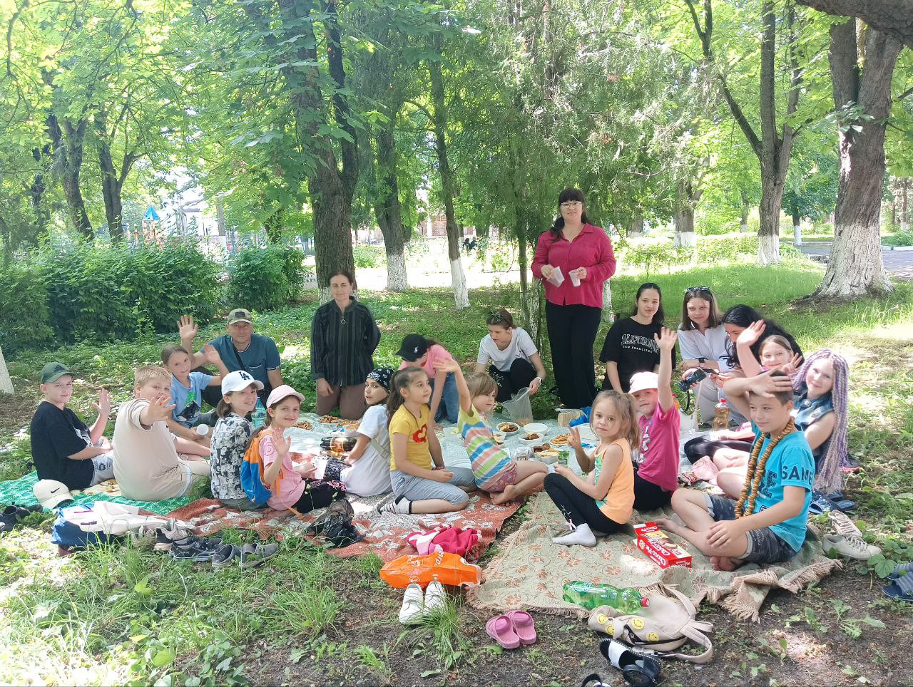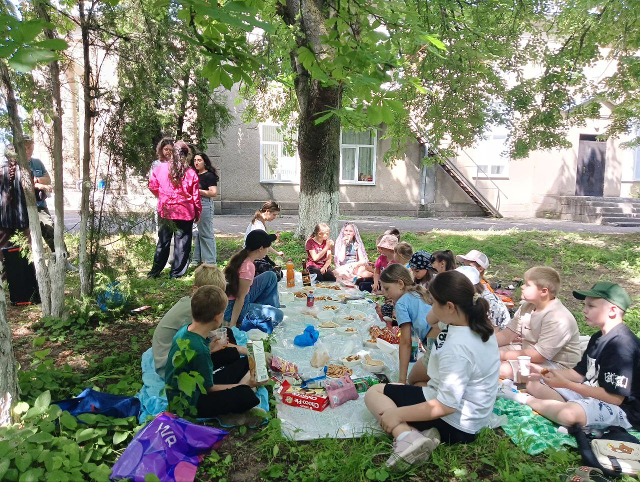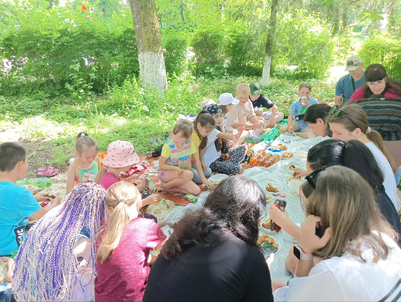 Ребята в парке станицы развернули «скатерть-самобранку» и угощали друг друга сладостями.