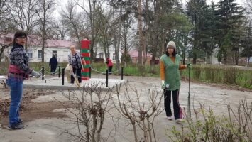 Работники Дома культуры провели очередной субботник. Очистив территорию от мусора и прошлогодней листвы.