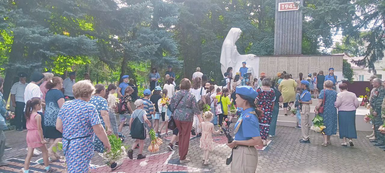 Станичники почтили минутой молчания память обо всех героях той страшной войны и возложили цветы к подножию мемориала «Скорбящая мать».