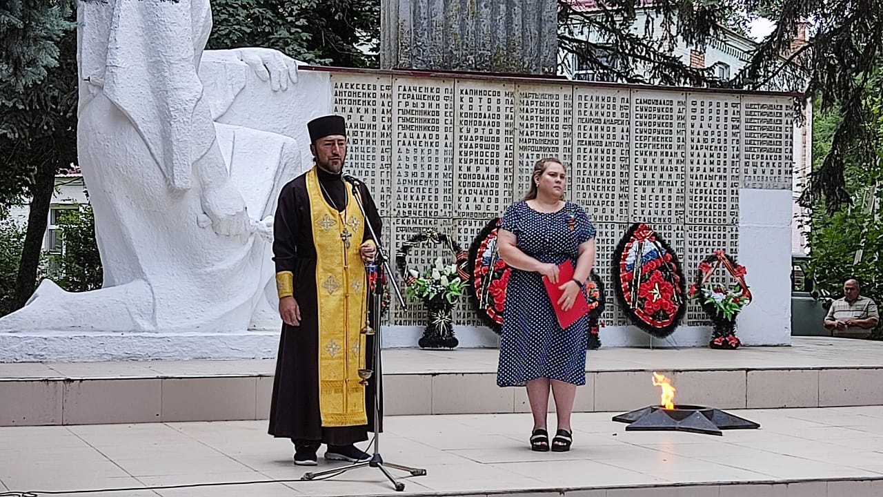 Поминальную молитву о всех погибших в годы ВОВ, зачитал Иерей храма Святителя Николая отец Александр.