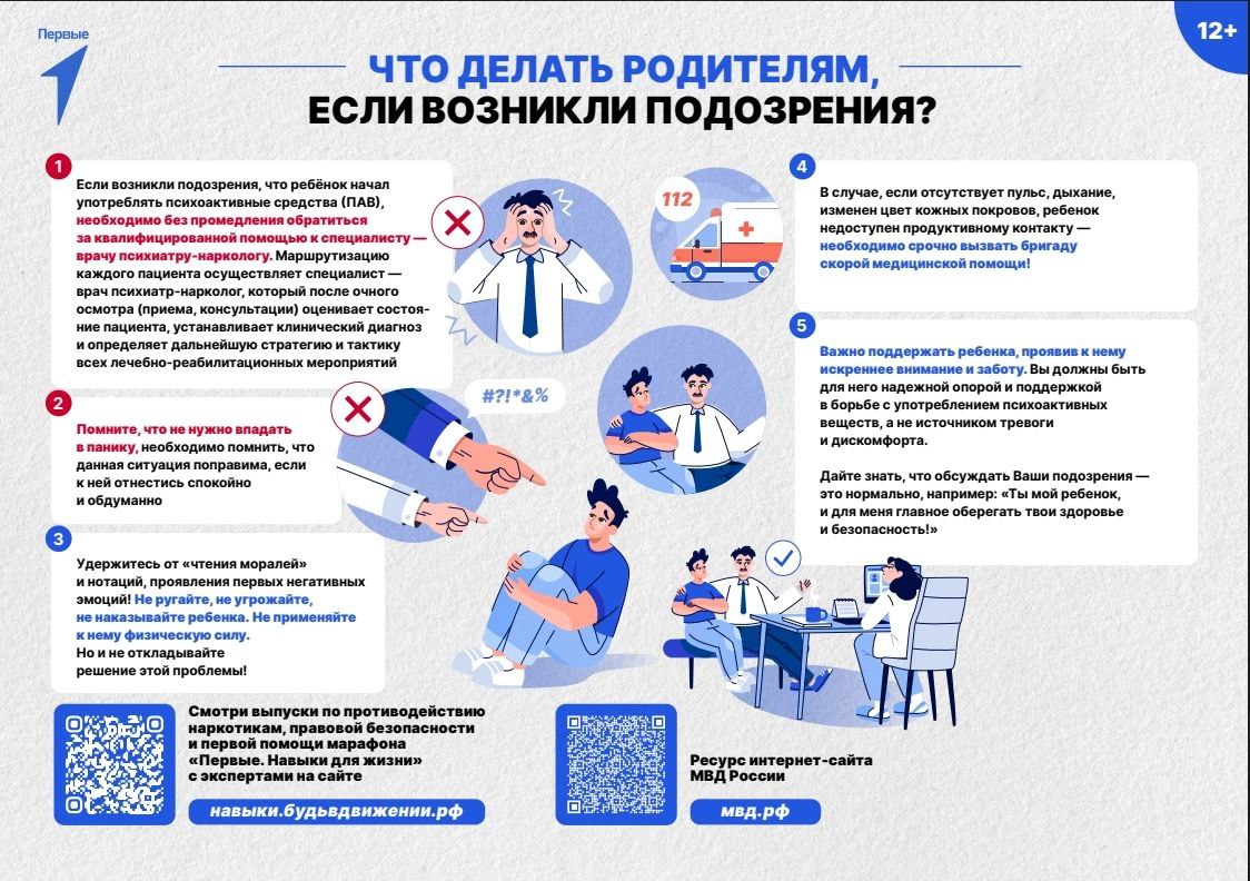 Информационно-просветительская кампания «Движения первых» ориентирована на развитие культуры безопасности, повышение информированности и ответственности среди учащихся школ и вузов, их родителей, учителей и наставников. https://навыки.будьвдвижении.рф/nodrugs