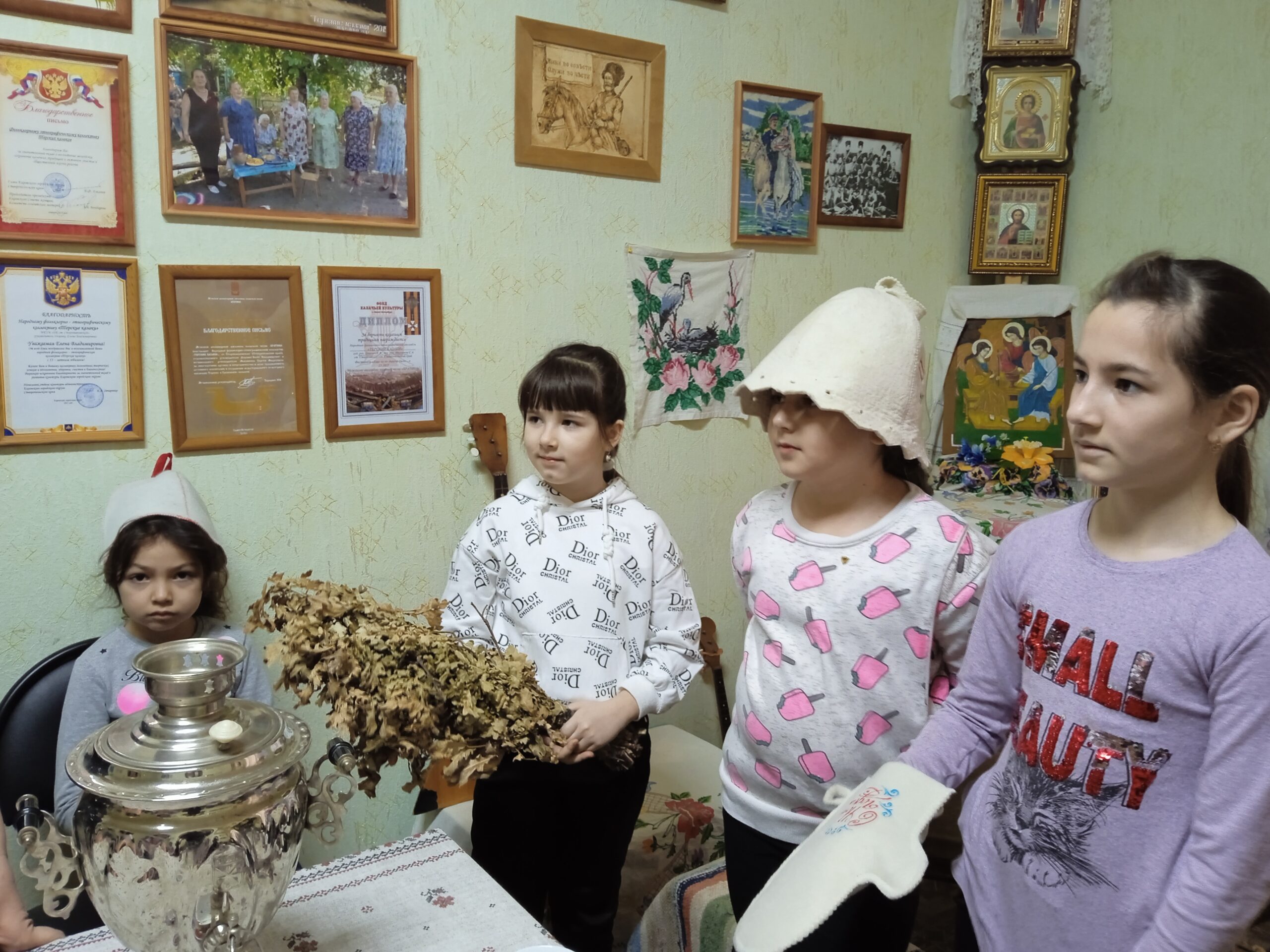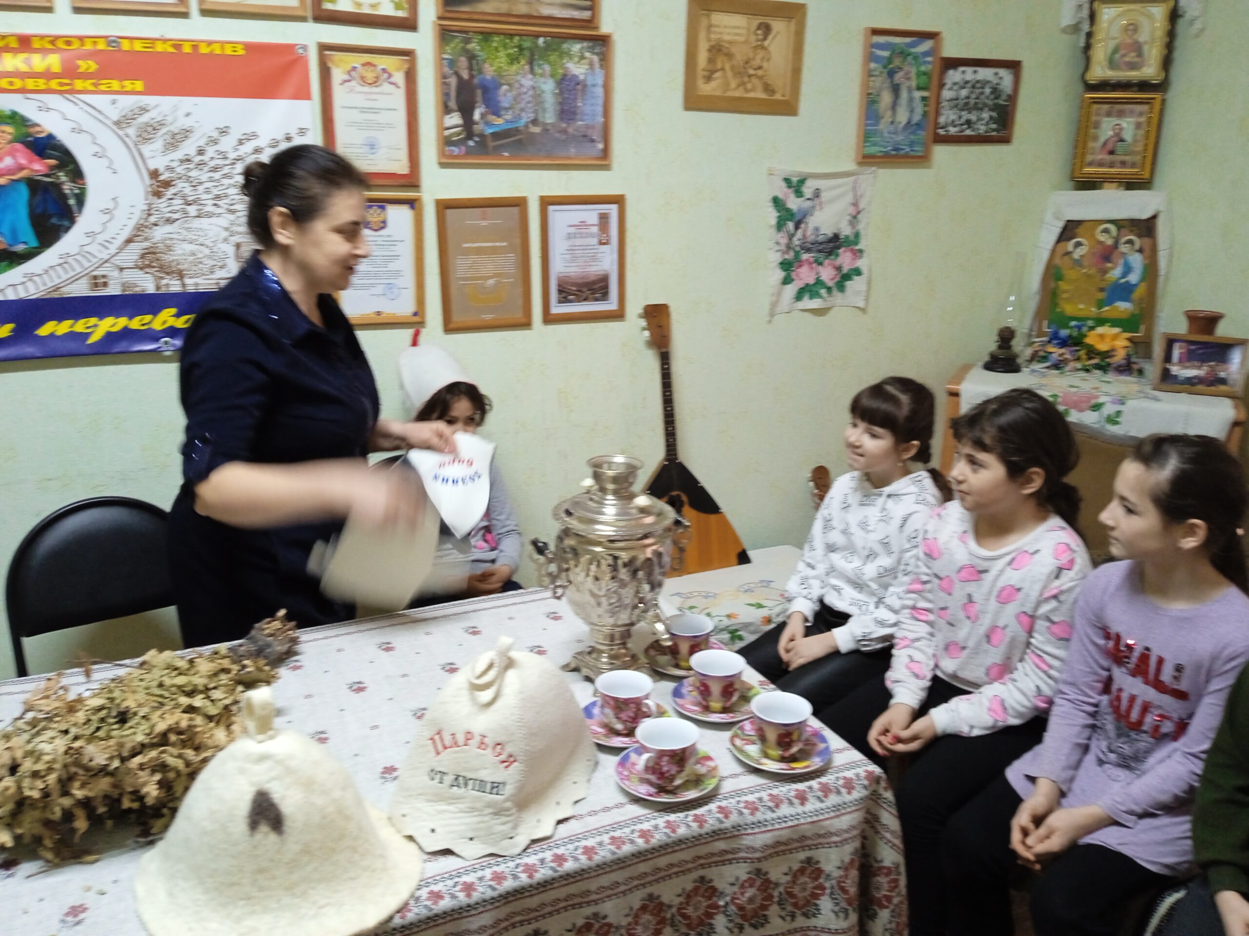 Руководитель клубного формирования 2 категории Доценко Е. В. провела познавательное мероприятие «Чистота — залог здоровья». Ребята узнали, когда на Руси появились бани, что таакое баня по-черному, какие в старину использовались веники и как правильно париться, что бы быть здоровым. Ведь не даром в народе говорят — чистота залог здоровья.