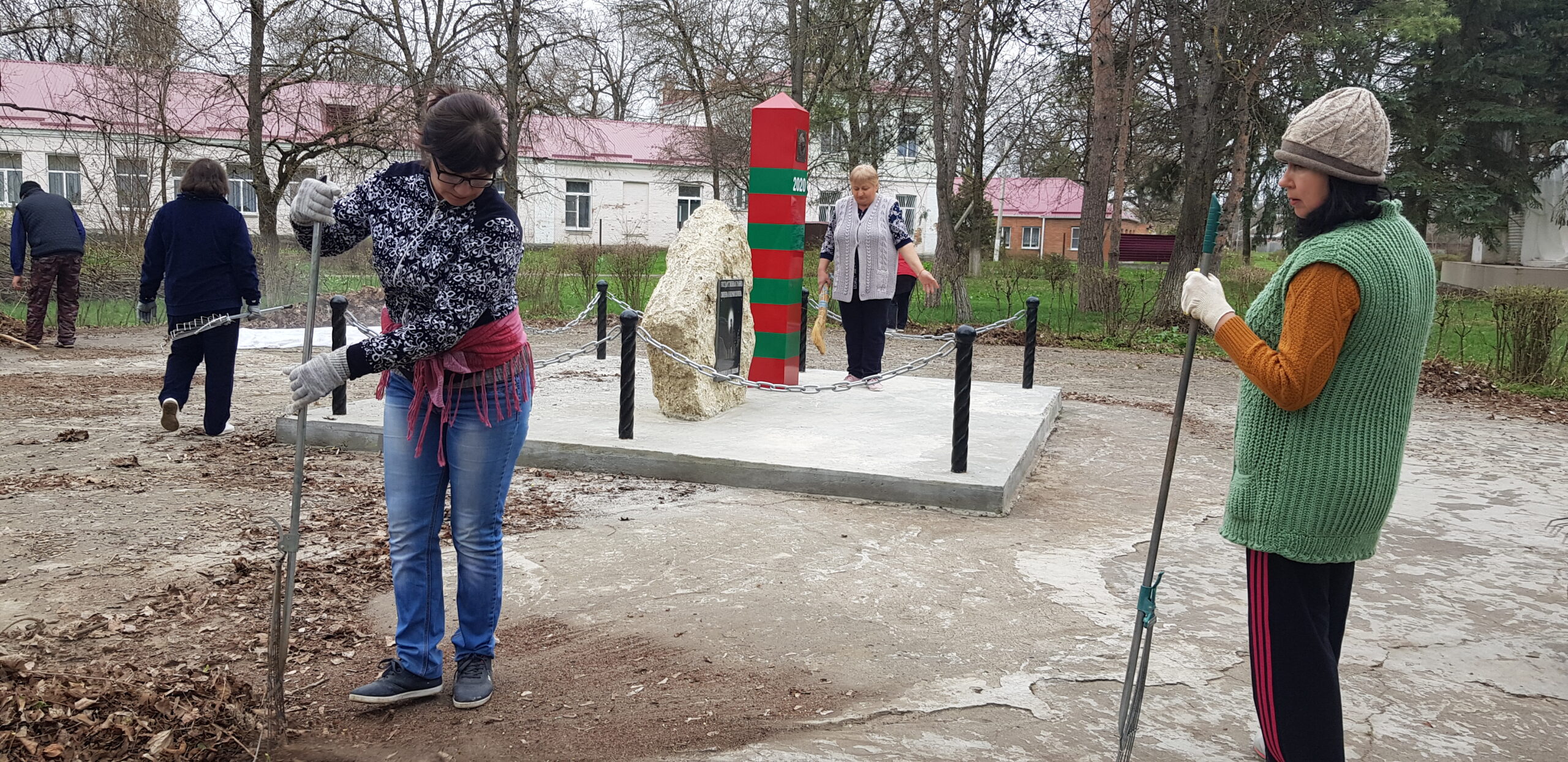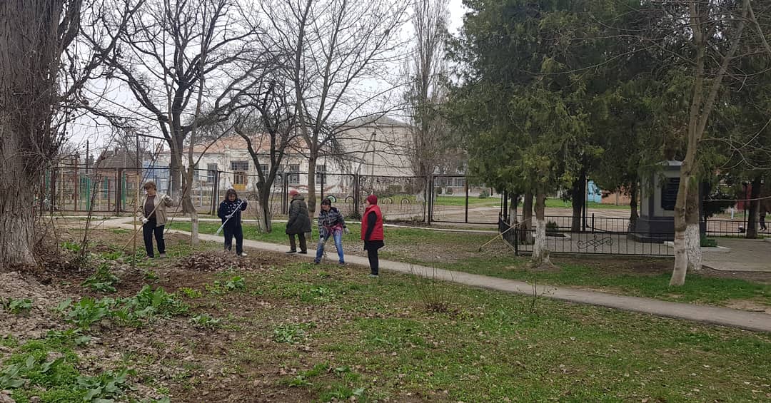 Работники Дома культуры провели очередной субботник. Очистив территорию от мусора и прошлогодней листвы.