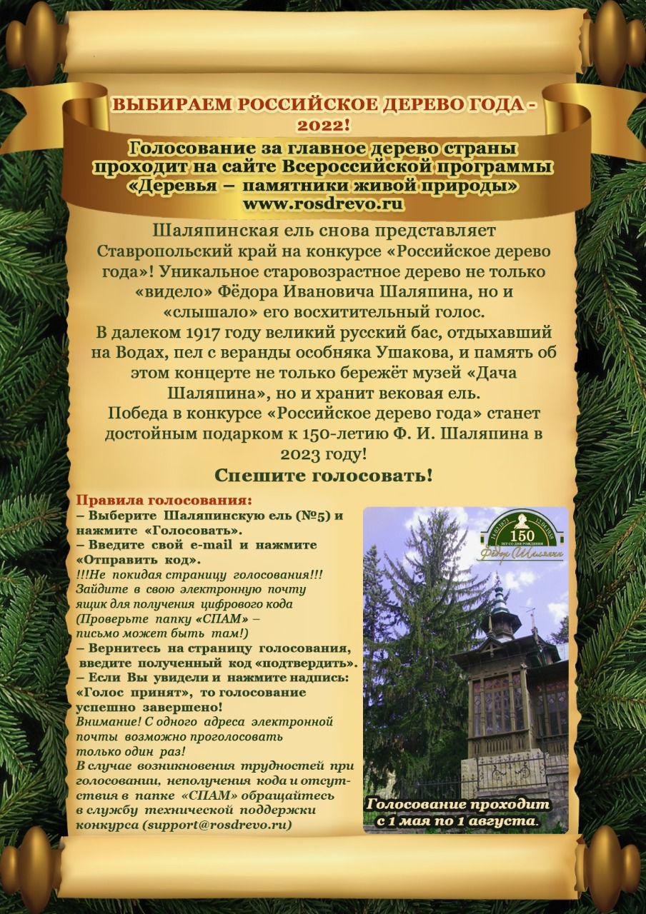 Шаляпинская ель снова представляет Ставропольский край на конкурсе «Российское дерево года»!